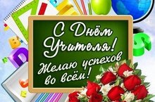 Дорогие наши учителя! Поздравляем вас со Всемирным днем учителя! Высоко ценим щедрость ваших любящих сердец, ваше терпение и понимание, преданность делу и любовь к нам — своим ученикам! Желаем крепчайшего здоровья, бодрости тела и духа, радости от вашего нелегкого труда и всяческих удач в личной жизни! Пусть вас окружают уважение и любовь, доброжелательность и милосердие, жизнерадостность и наша благодарность!