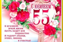 От всей души поздравляем вас с пятидесяти пятилетием! Желаем вам быть счастливыми и любимым, не знать печалей и огорчений, поменьше волноваться. Но самое главное пожелание, как и в любом, наверное, возрасте – это пожелание здоровья!С юбилеем поздравляем вас!