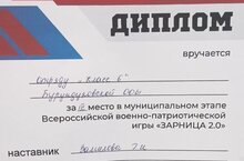 Отряд "Класс 6" нашей школы участвовал в муниципальном этапе Всероссийской военно-патриотической игры «Зарница 2.0». Ребятам пришлось пройти настоящую проверку на прочность, преодолев 8 этапов состязания. Они продемонстрировали строевую и спортивную подготовку, проверили знания общевойсковой грамотности и Отечественной истории, оказали первую медицинскую помощь пострадавшему, выполнили нормативы по радиационной и биологической защите. Ловкость, сноровка, скорость, смелость и, конечно, командный дух помогли ребятам успешно пройти все испытания. По итогам соревнований в средней возрастной категории наша команда заняла 3 место (руководитель Замилова Г.И.).