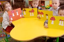 Балаларны кисеп-ябыштыру белән кызыксынуларын үстерү,кәгазьдән гөмбә кисәргә өйрәнү,гөмбәләр турындагы белемнәрен арттыру.