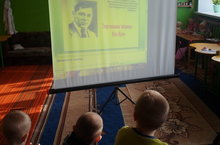 Китапханәче Бикбова Ф К. балаларны Муса Җәлилнең тормыш юлы һәм шигырьләре белән таныштырды.Барлык балалар белән бергәләп "Сәгать" җырын җырладылар, бик күңелле булды.