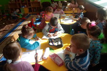 Балалар рәсем дәресендә шаблоннар ярдәмендә төрле яшелчәләр ясадылар .