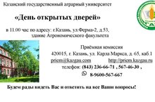 «День открытых дверей» 14 марта 2020 года в 11.00 час по адресу:г.Казань, ул.Ферма-2, д.53, здание Агрономического факультета