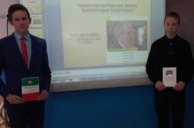 Татарстан Республикасы Конституциясенең 25 еллыгына карата тарих-җәмгыять белеме укытучысы Бухарова Л.Г. парламент дәресе үткәрде. Ул мәктәп укучыларына гади һәм аңлаешлы формада республика канун чыгару хөкүмәт органының роле һәм эшчәнлеге, кеше хокукы һәм бурычлары, сәяси-җәмгыять тормышында катнашу алымнары, кануннарның безнең тормышта тоткан роле турында сөйләде.