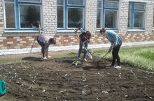 Каждому классу была отведена своя территория для работы. Начальные классы убирали мусор вокруг школы. Старшеклассники копали землю, делали грядки для моркови и столовой свеклы и засеяли.