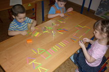 Кечкенәләр төркем балалары бергәләшеп Лего конструкторнын эре һәм вак төзелеш материалы белән уйнылар, җыялар, сүтәләр, төрле образлар тудыралар. Бу уен кызык һәм бик файдалы.