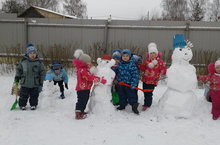 на свежем воздухе. Вместе с воспитателями слепили на участке фигуры..