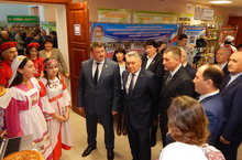 Перед началом заседания министр образования вместе с Главой района посетили Большекайбицкую школу, осмотрели выставку продукции крестьянско-фермерских хозяйств, предприятий, организаций, учащихся школ, которая была организована в фойе Дома культуры. -
