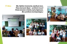 Без языка не существовал бы мир. Как рыба не может жить без воды, так человек не может существовать без языка. На языке мы думаем, общаемся, творим. Одни учёные считают, что на свете 2,5 тысяч языков, другие – 4 тысячи. Язык и культура, быт и уклад жизни народов соседей, проживающих на территории России, постоянно взаимодействуют, обогащая друг друга: по телевидению и радио звучат национальные мелодии на языках народов России, создаются книги. Государство активно развивает и бережно поддерживает традиционные культуры всех проживающих народов. Мы с вами пришли к выводу, что надо бороться за чистоту родного языка. Чтобы быть достойным гражданином своей страны, нужно сохранять её культуру и традиции. За обедом ребята съели все, что им предложили. После обеда ребят ждали традиционные кружки по интересам. Потрудились все в этот день хорошо, и поэтому домой уходили довольные результатами очередного лагерного дня.