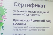 Безнең балалар бакчасы Бөек Ватан сугышында һәлак булган сугышчылар һәм тыл хезмәтчәннәре истәлегенә агачлар утырту буенча ”Хәтер бакчасы” халыкара акциясендә актив катнашты. Тәрбиячеләр:Салахова И.Г.,Халикова С.Г.