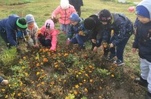 Зурлар төркеме балалары саф һавага чыккач, табигать күренешләрен күзәтүне дәвам итәләр. Алар көзнең соңгы чәчәкләренең матурлыгына карап сокландылар.