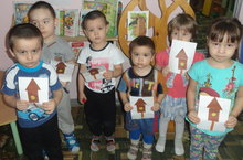 Балаларны яз, “күчмә кошлар”, сыерчык белән таныштыруны дәвам итү; балаларның сөйләм телен үстерү, сүзлек запасын баету, игътибарларын, хәтерләрен ныгыту; геометрик фигураларны, төсләрне ныгыту;кошларга карата сак караш, алар турында кайгыртучанлык, язын аларга оялар ясау теләге тәрбияләү максатыннан бүген без ,икенче кечкенәләр төркеме балалары белән,кисеп-ябыштыру эшчәнлегендә ,кунакка килгән сыерчыкның дусларына матур-матур ояларны ,геометрик фигуралардан ябыштырып ясадык.