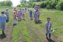 Балаларны туган як, туган төбәк белән таныштыру йөзеннән бистәбезнең урамнары, истәлекле урыннарына даими экскурсияләр оештырыла. Балалар белән Ильхамия Галимовна урам хәрәкәтен, тирә-юньдә үсүче агачларны күзәттеләр, урамнарның чиста-пөхтә булуына игътибар иттеләр.
