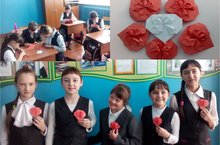 Бүген мәктәбебезнең яраткан кунагы - Насретдинова Л. кабат 5 нче сыйныф укучылары белән бергәләп хезмәт дәресен укырга дип мәктәпкә килде. Дәрестә алар төсле кәгазь битләреннән йөрәкләр ясадылар.
