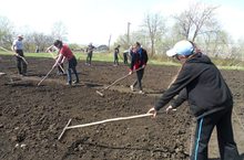 Укучылар Урсак Урман хуҗалыгында акация , корычгач һәм имән үсентеләрен җыеп бәйләмнәргә бәйләделәр.