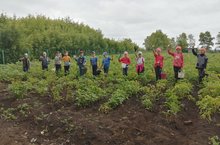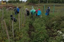 Мәктәптә җәйге практика чоры дәвам итә.Укучылар бакчада җиләк-җимеш,яшелчә җыеп туктаган арада,бәрәңге чүбен утарга да өлгерәләр. -