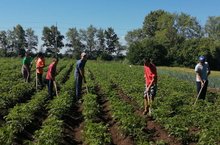 Инде өченче көн укучылар суган уңышы җыялар.Суган кышка гына түгел,көзге ярминкәдә сатарга да җитә.