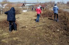 "ЭКОяз" айлыгы дәвам итә. Югары сыйныф укучылары укытучылар белән берлектә мәктәп территориясенең алгы өлешен җыештырдылар.