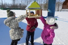Дети очень любят кормить птиц. Особенно нравится им наблюдать за кормушками, которые они сделали вместе с родителями.