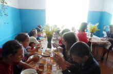 В столовой оченьуютно. Тишина. На столах цветы. И кормят всегда вкусно.