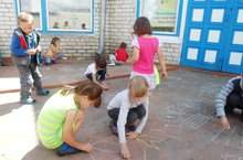 А ещё сегодня был конкурс рисунков на асфальте. Дети нарисовали свой лагерь.