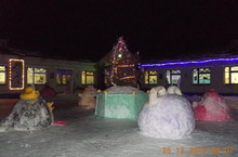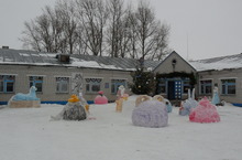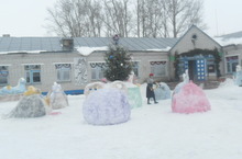 Подвели итог районного конкурса по украшению школьного двора и фасада школы. Мы, к сожалению, получили только поощрительный приз в размере 1000 рублей (4 место). Но для нас наш двор самый красивый и нарядный. Здесь образовалась из снега "страна смешариков". В гости прискакала голубая лошадь, пришли снегурочка с дедом Морозом с огромным мешком, примостился олененок с невиданной птицей. А сколько гирлянд.