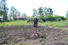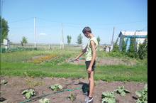 Капуста каждый год радует нас богатым урожаем. И нынче она сразу принялась в ход. Но надо ее освободить от сорняков над этим и трудятся девочки.