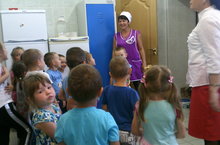 Согласно плана воспитательной работы педагогов,сегодня была проведена работа с воспитанниками по теме "Профессия".Дети привели много примеров,рассказали кем и где работают их родители.Профессия повара была самой обсуждаемой и "вкусной" профессией и поэтому сходили на экскурсию в пищеблок,где им повар рассказала что,где и как готовится