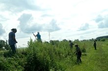 Коллектив детского сада скашивает бурьян обочин дорог в сторону Полевая Буа,где ни разу не проезжала техника "Автодора"по скашиванию обочин дорог. .