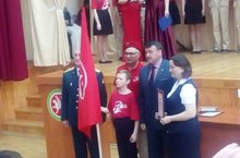 В этот праздничный день в торжественной обстановке нашему отряду юнармейцев "Соколы" были вручены флаг юнармейцев и свидетельство. Поздравляем всех юнармейцев и желаем дальнейших творческих побед!