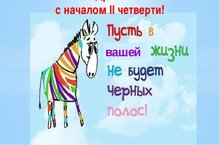 Поздравляю Вас с началом второй четверти.Желаю много "5", отличного настроения, удачи и новых побед в конкурсах!!! -