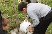 Начальные классы сажали саженцы яблони.