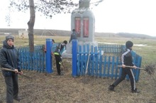 Тимуровский отряд «Милосердие» очистил территорию возле памятников.