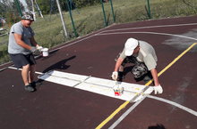 Подготовка спортплощадки к новому учебному году.
