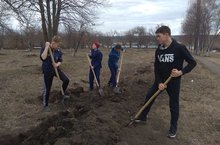 В рамках акции "ЭкоВесна2019" учащиеся 8 класса выкорчёвывали корни сирени.