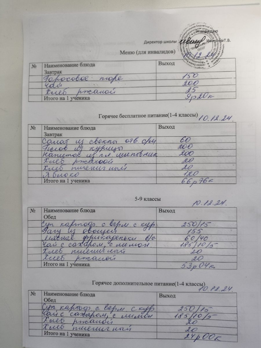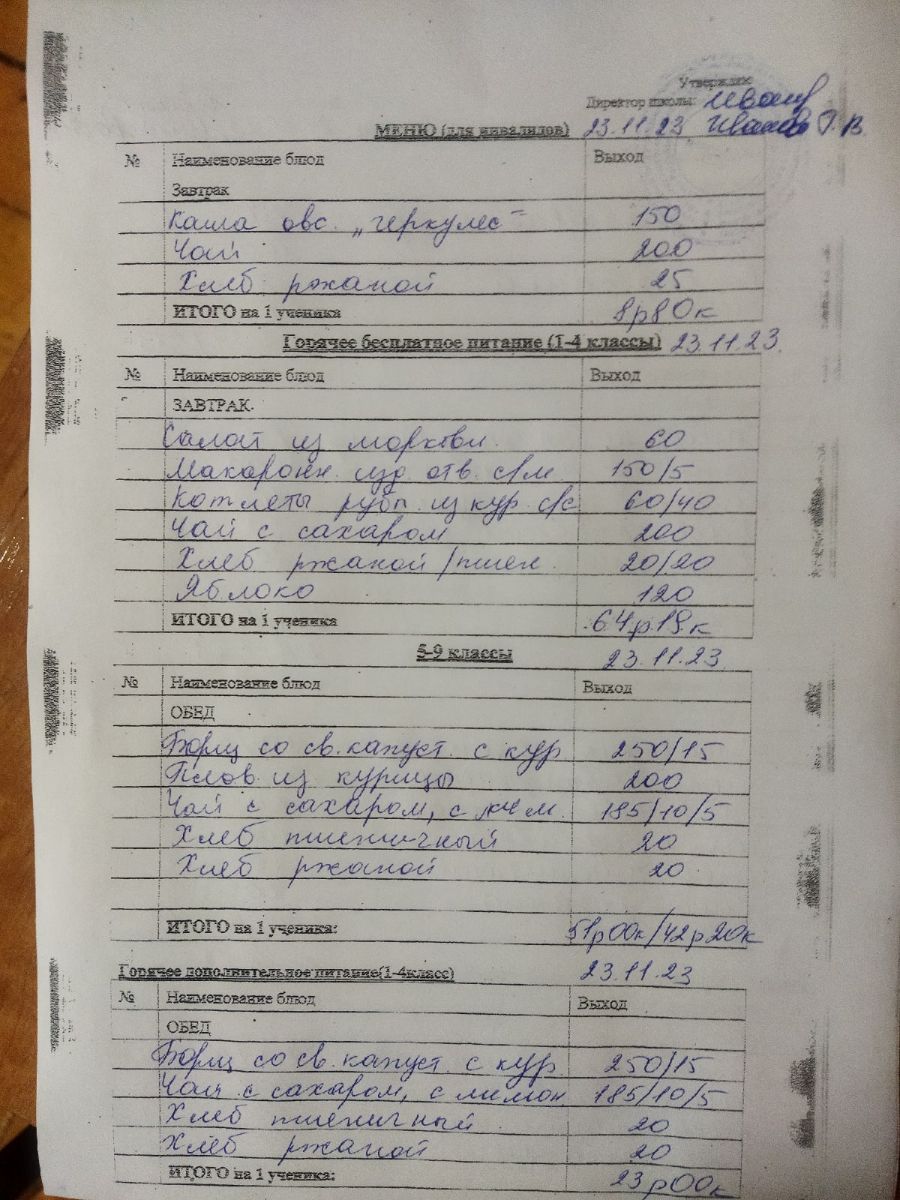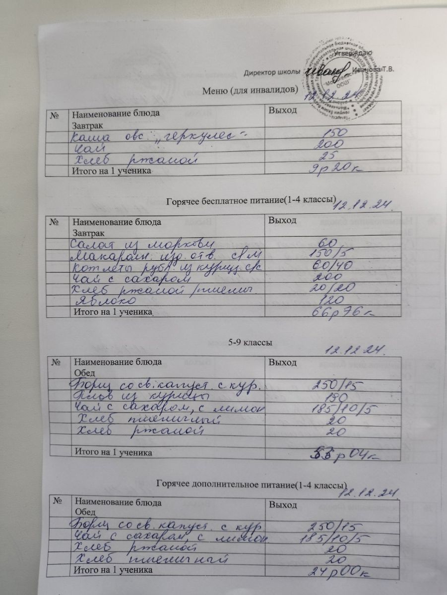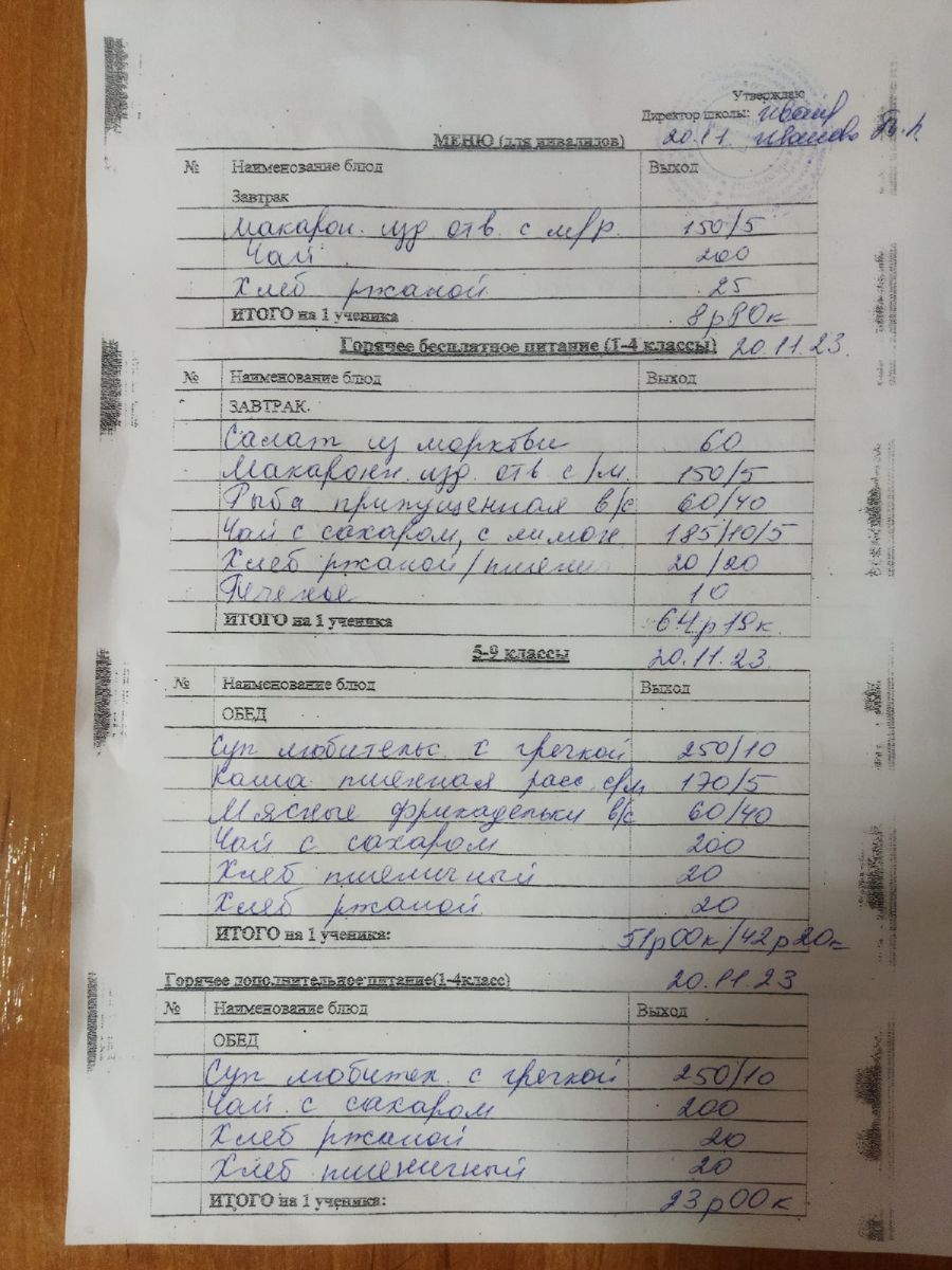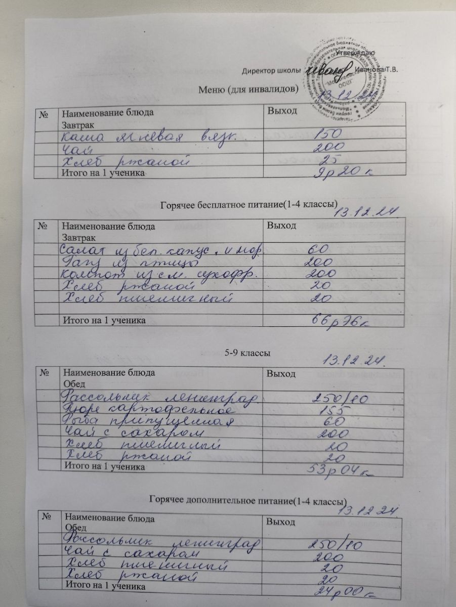 - Меню в столовых общеобразовательных школ РТ с 20 по 25 ноября , 04 по 09 декабря , 18 по 23 декабря 2023г.