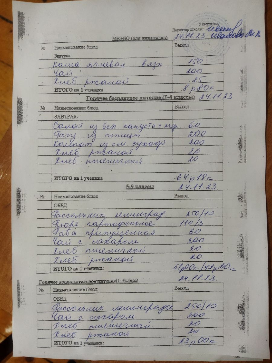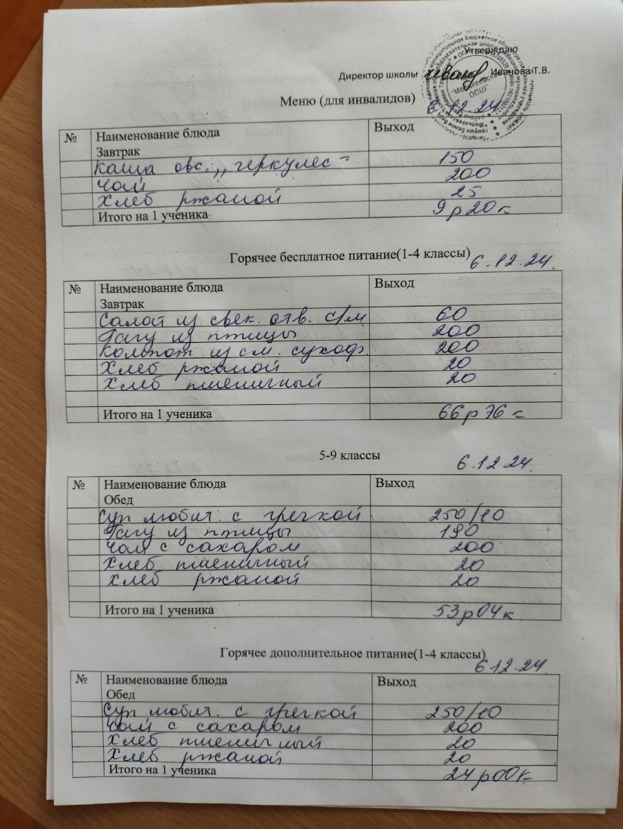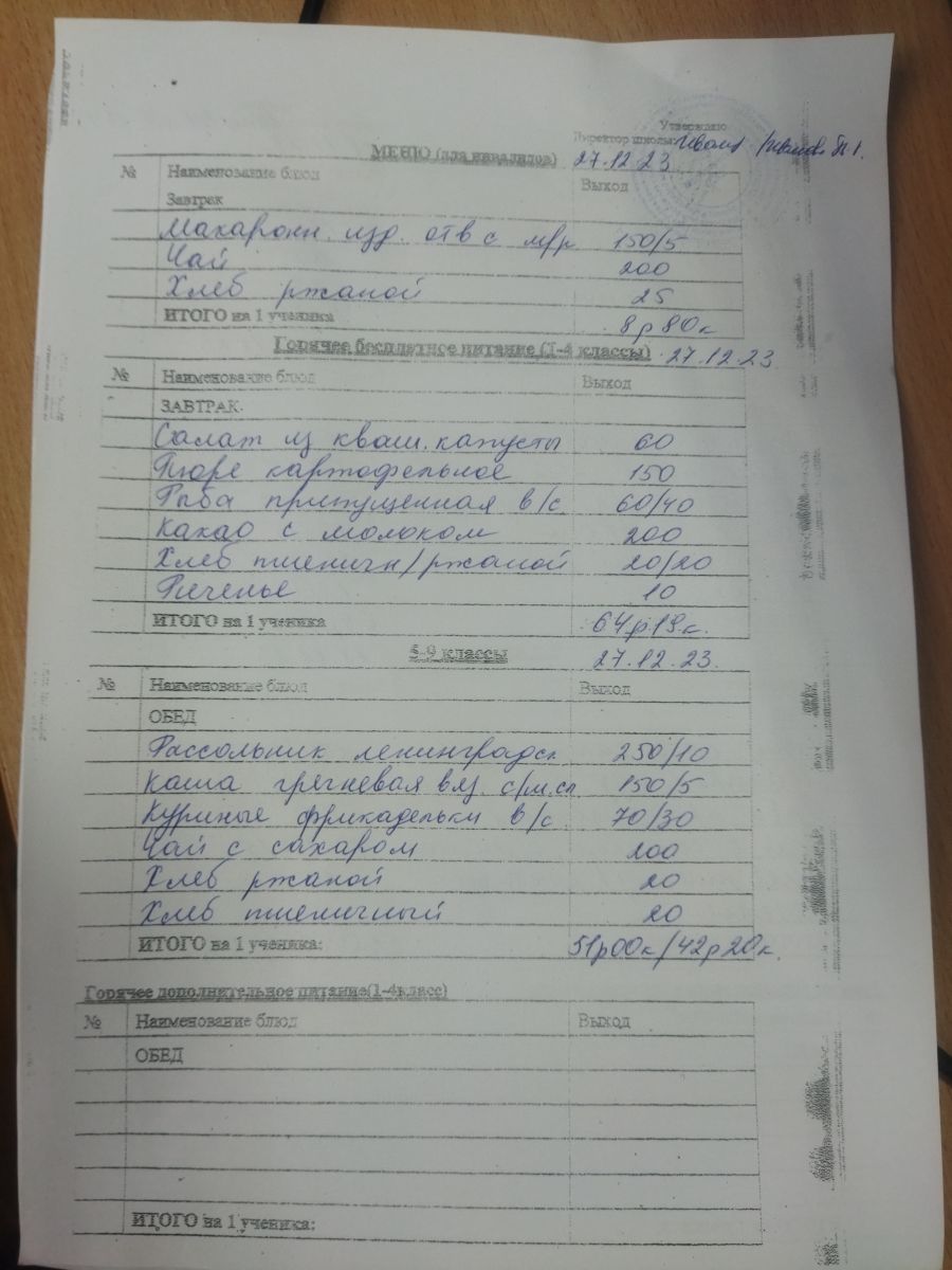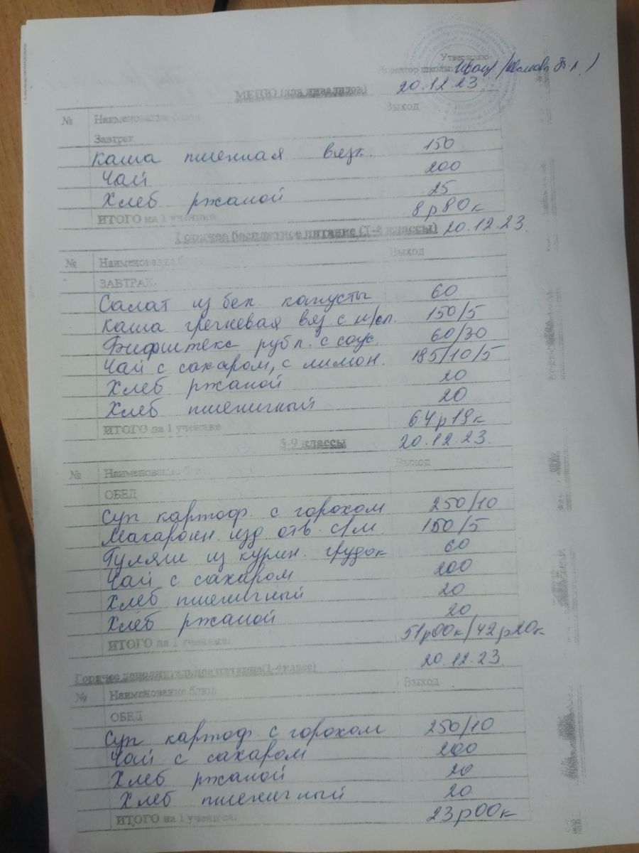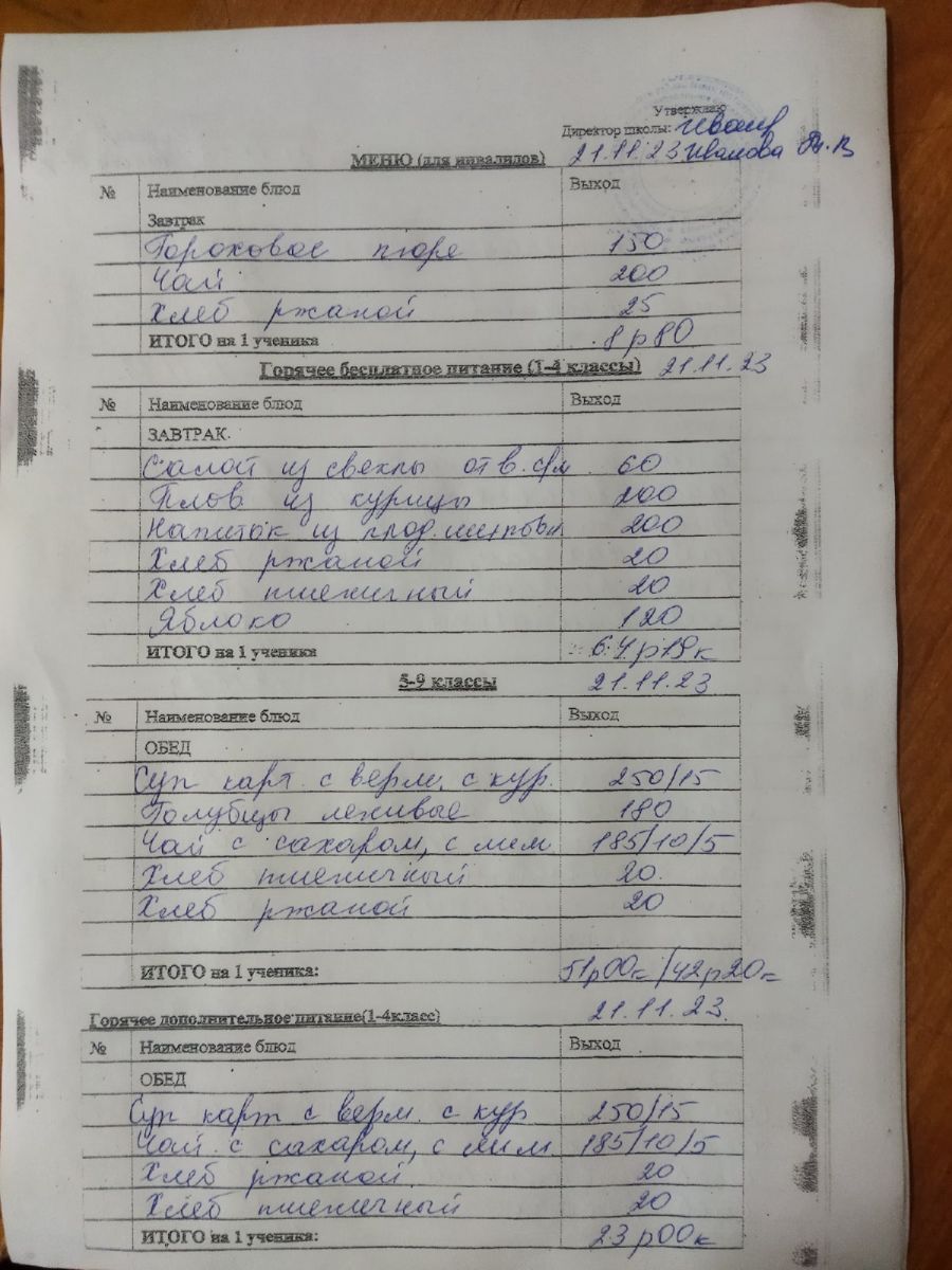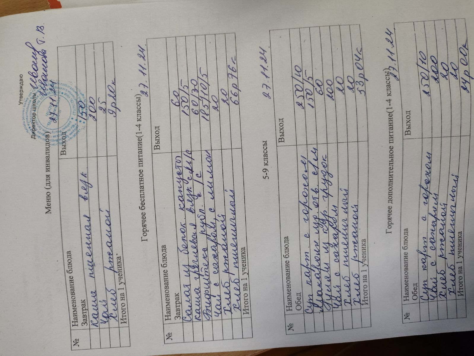 - Меню в столовых общеобразовательных школ РТ с 20 по 25 ноября , 04 по 09 декабря , 18 по 23 декабря 2023г.