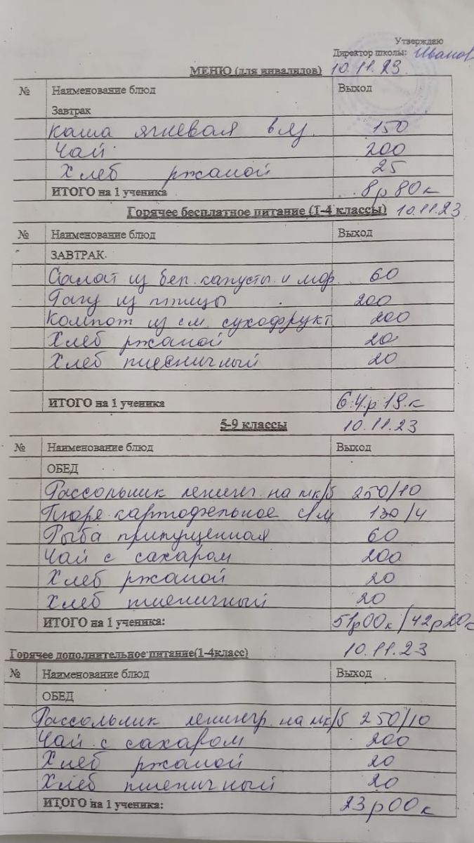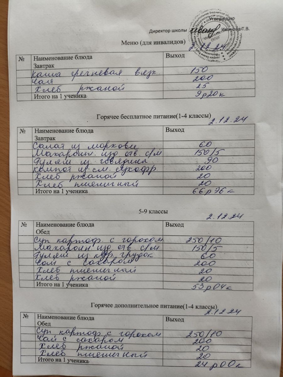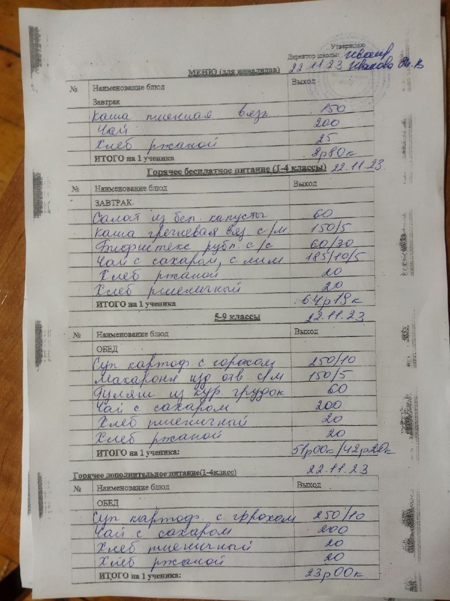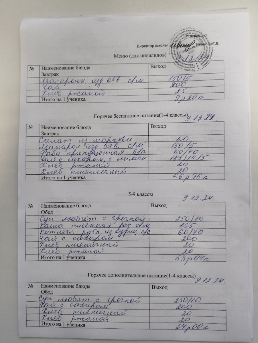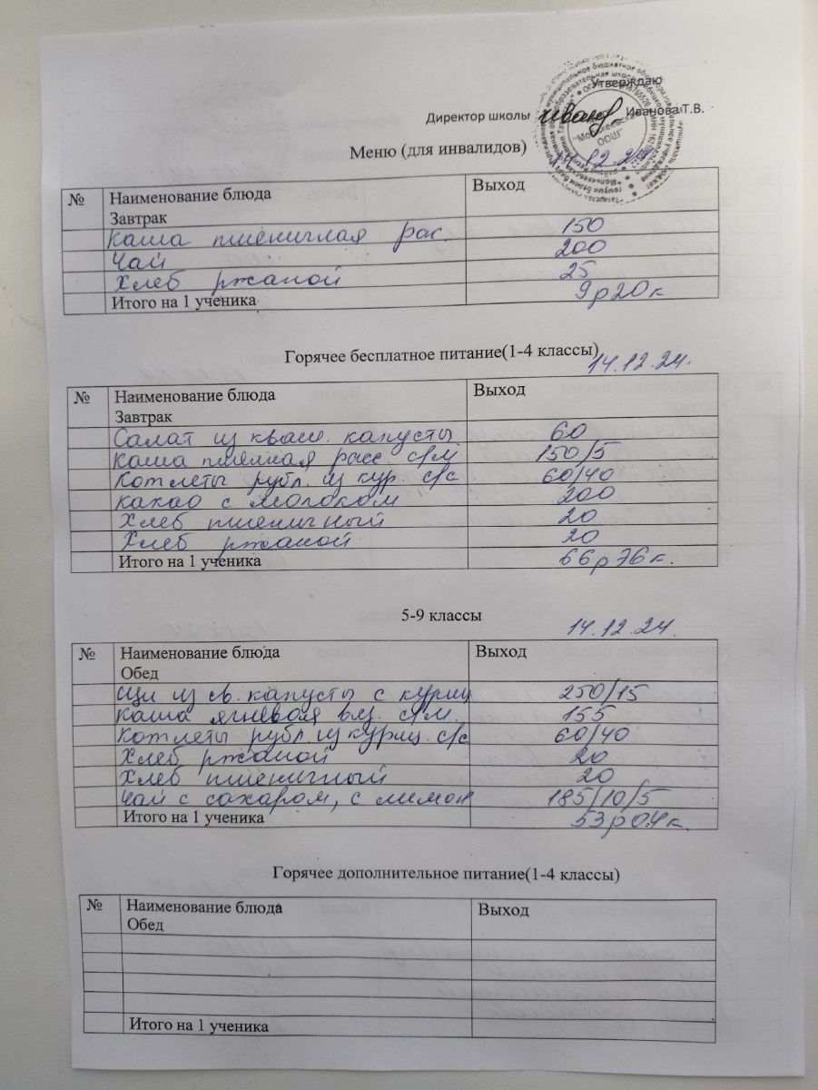 - Меню в столовых общеобразовательных школ РТ с 20 по 25 ноября , 04 по 09 декабря , 18 по 23 декабря 2023г.