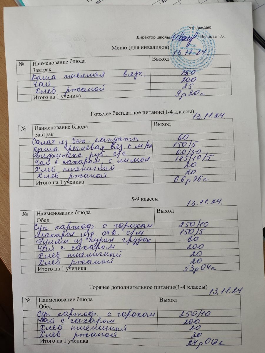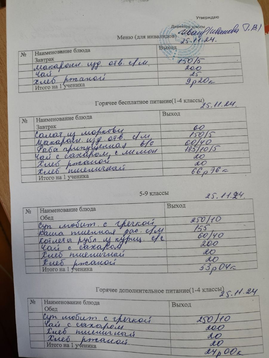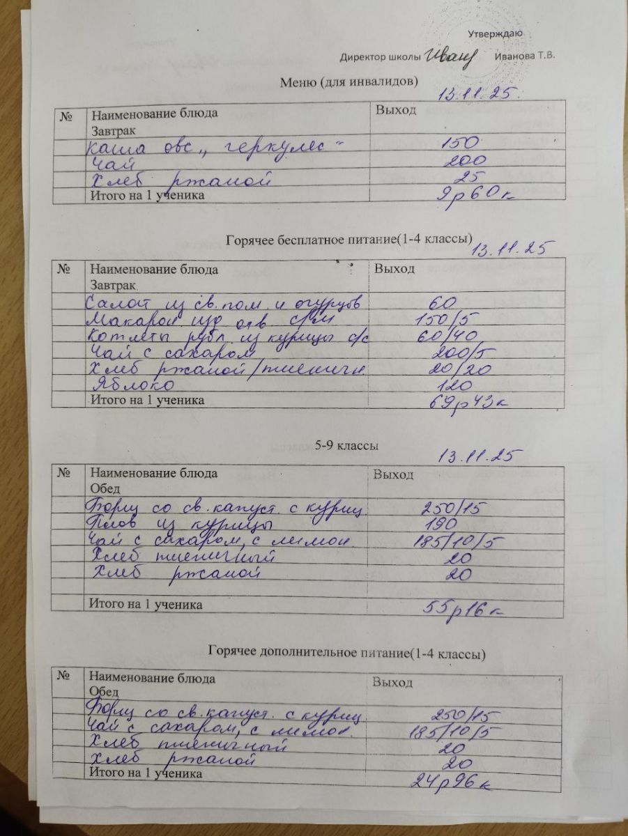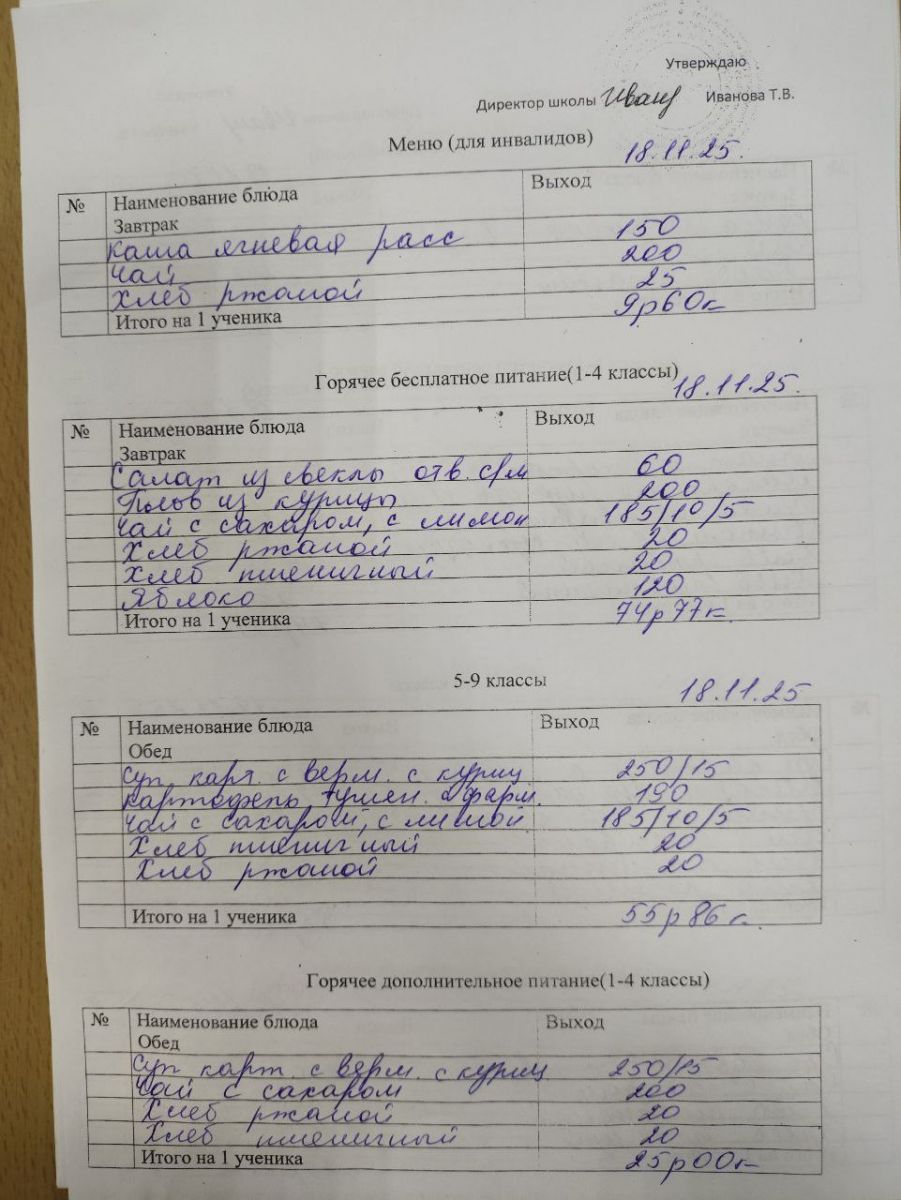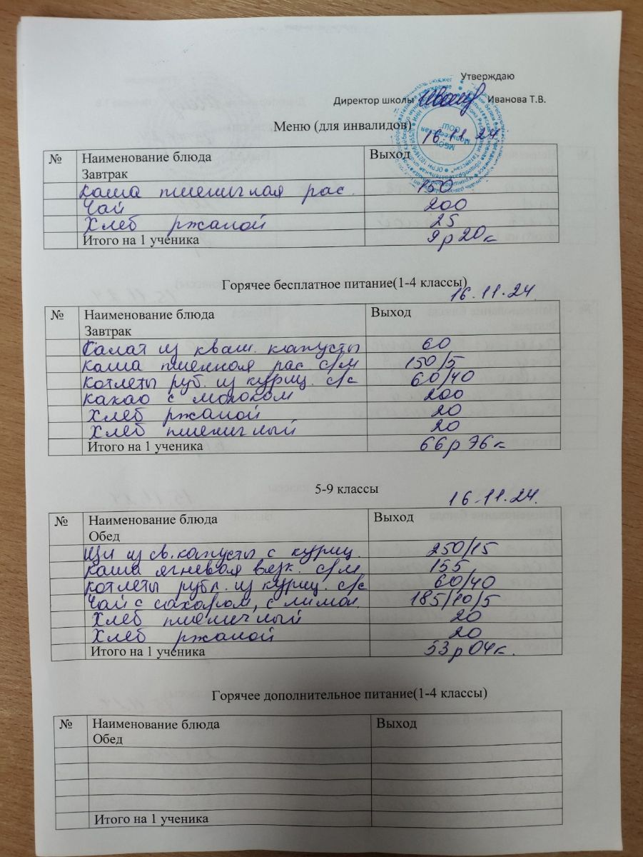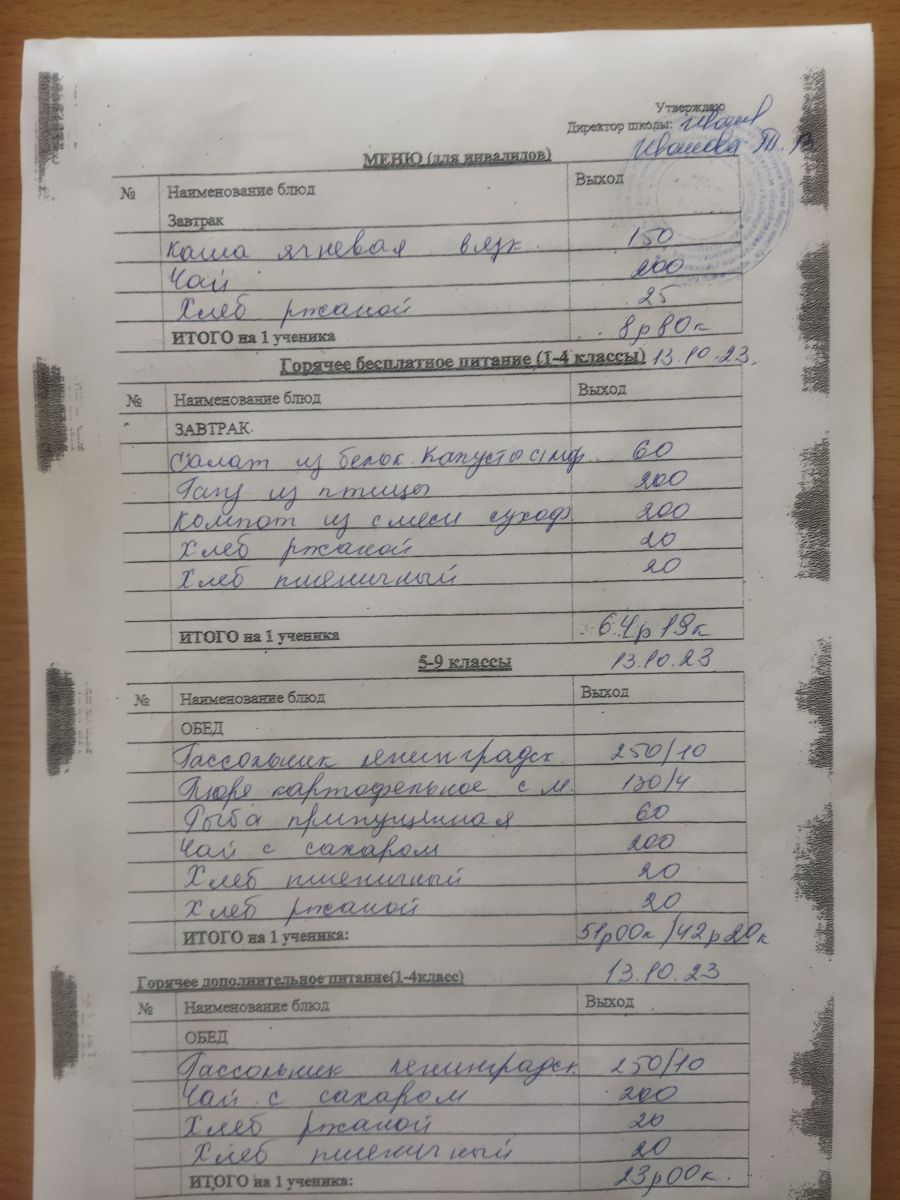 - Меню в столовых общеобразовательных школ РТ с 20 по 25 ноября , 04 по 09 декабря , 18 по 23 декабря 2023г.