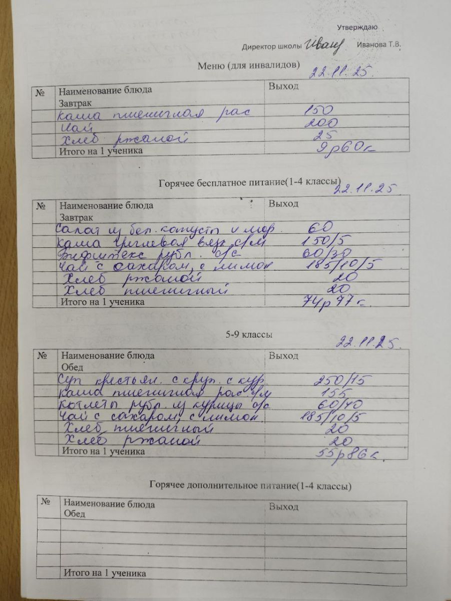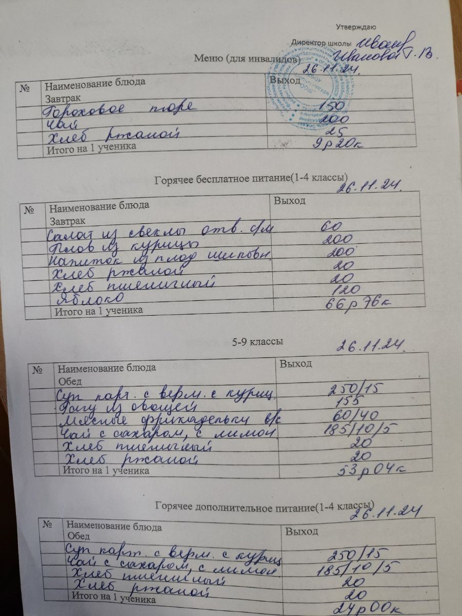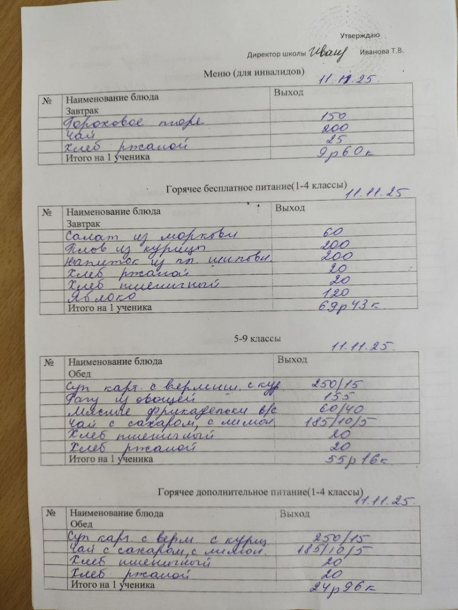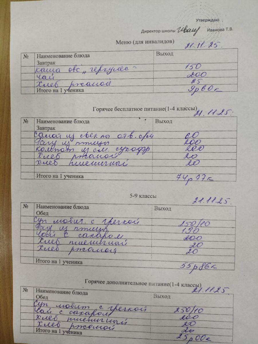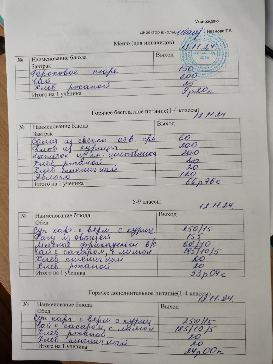- Меню в столовых общеобразовательных школ РТ с 20 по 25 ноября , 04 по 09 декабря , 18 по 23 декабря 2023г.