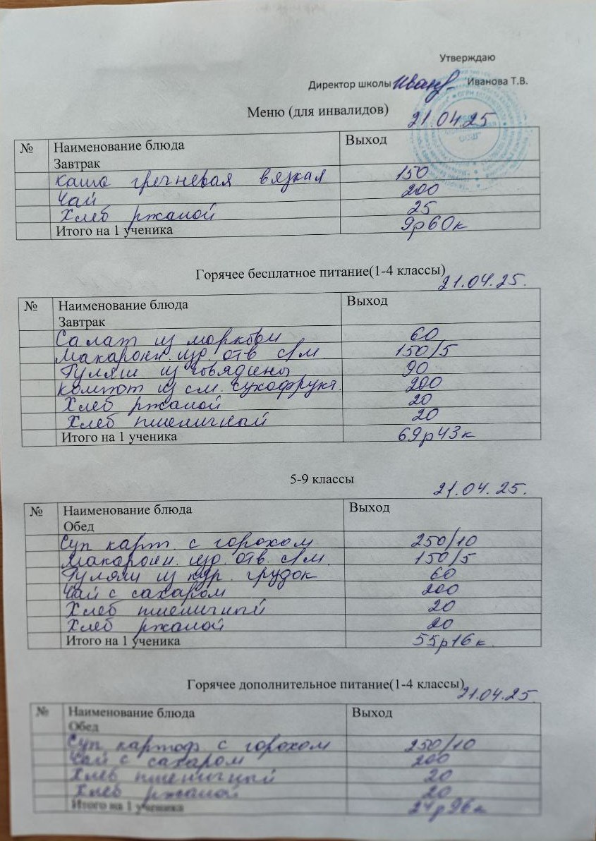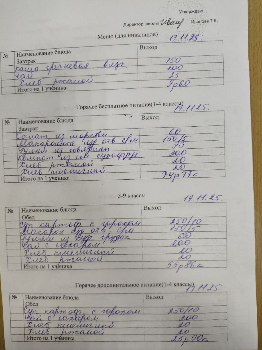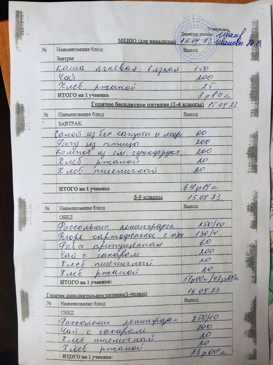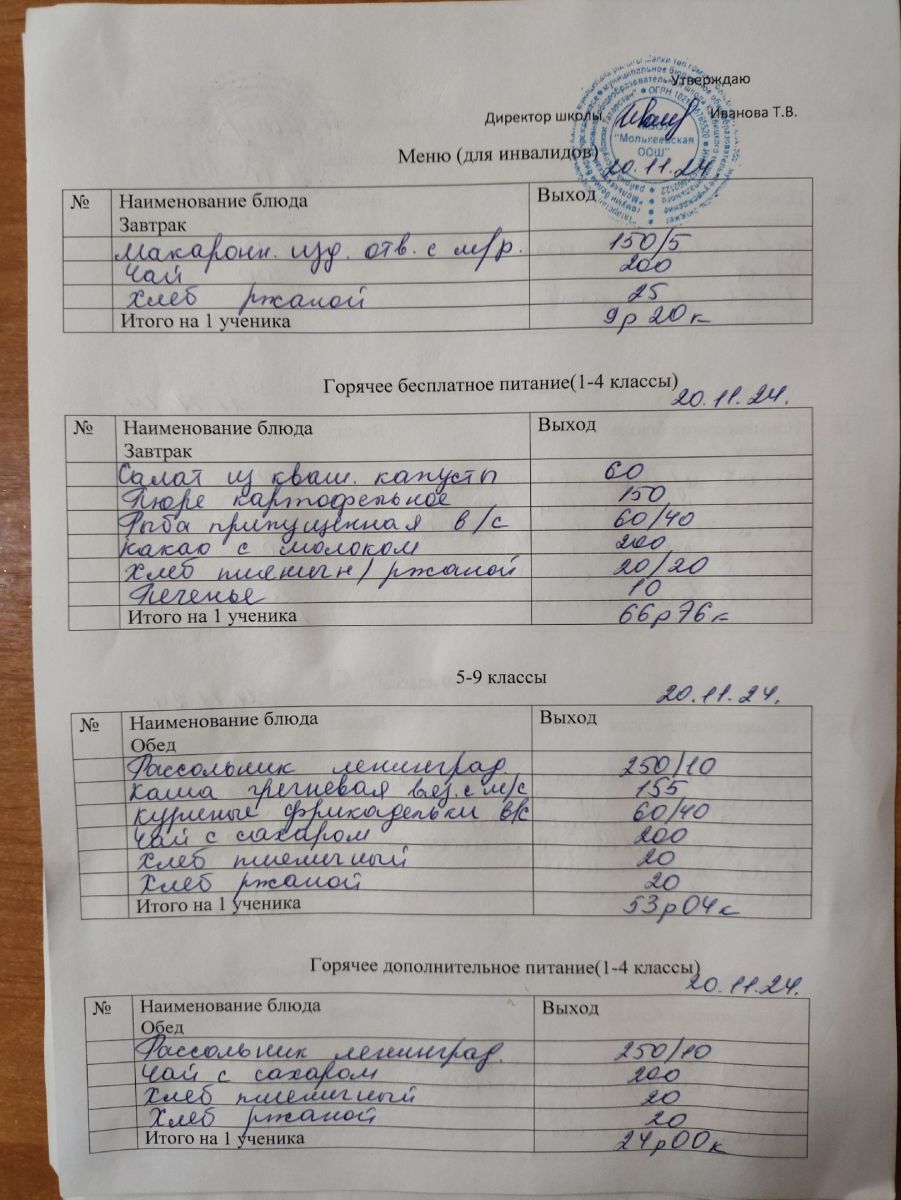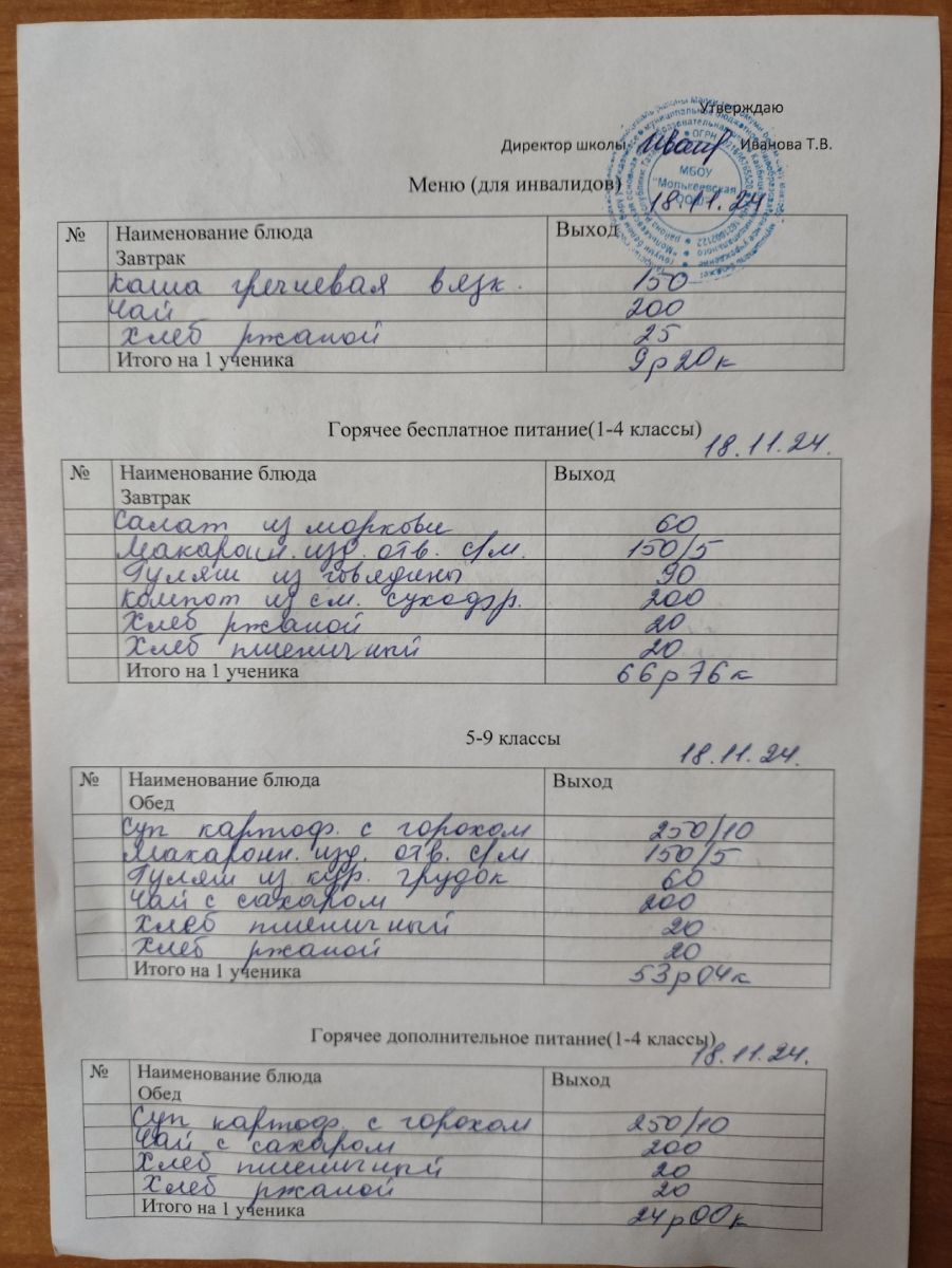 - Меню в столовых общеобразовательных школ РТ с 20 по 25 ноября , 04 по 09 декабря , 18 по 23 декабря 2023г.