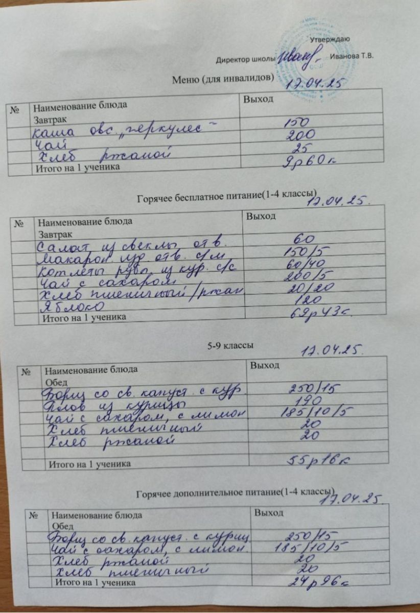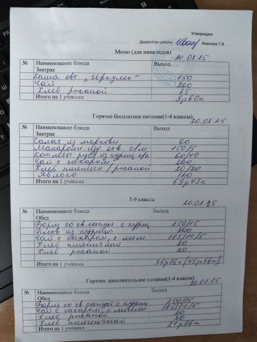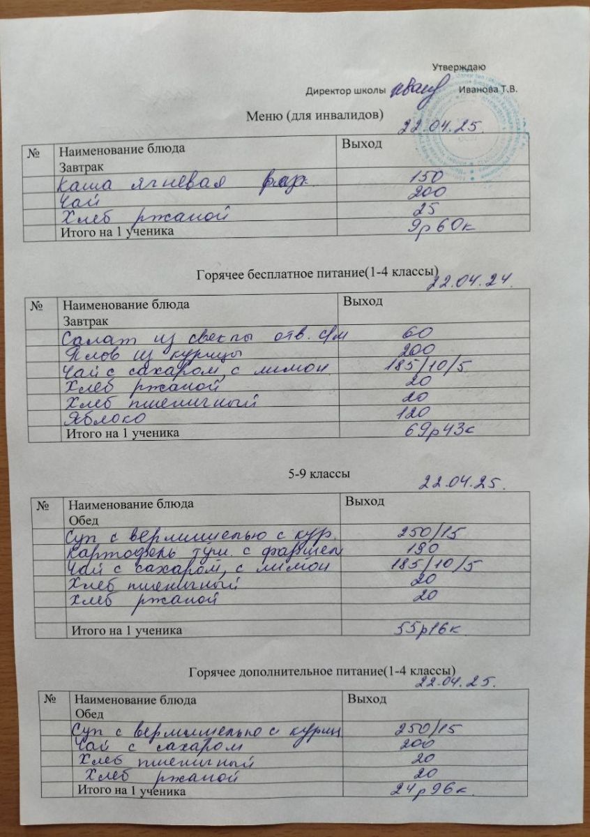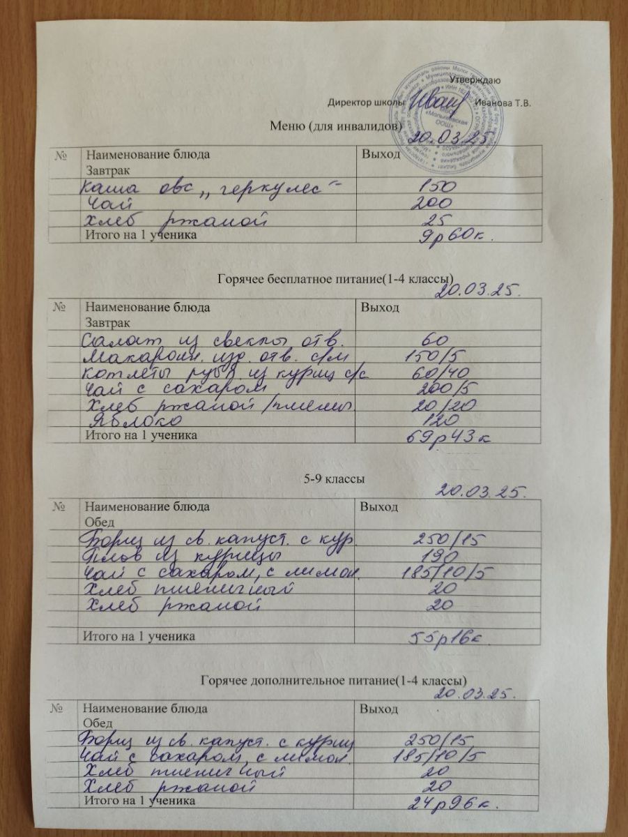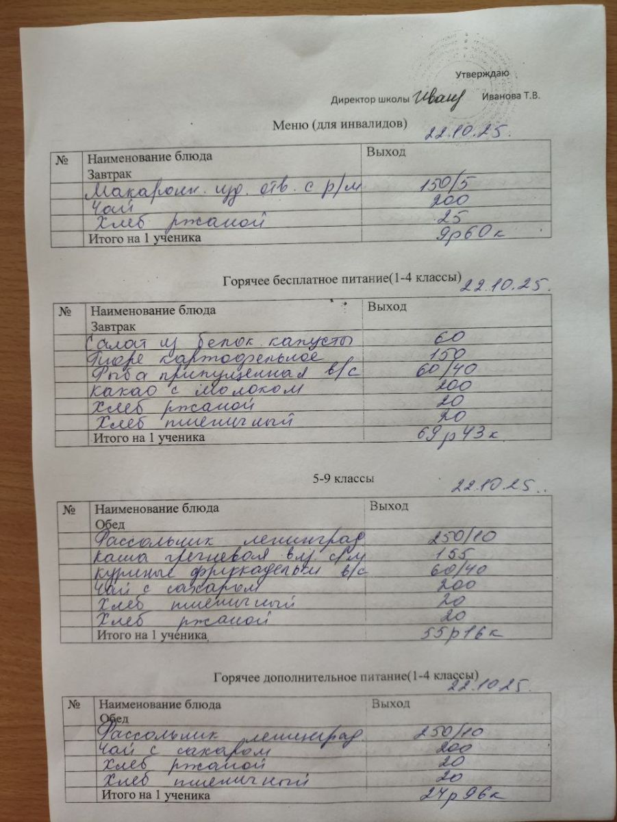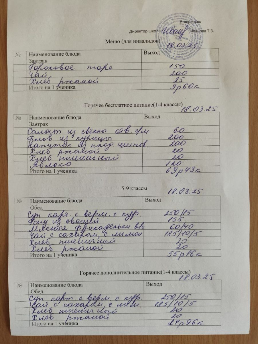- Меню в столовых общеобразовательных школ РТ с 20 по 25 ноября , 04 по 09 декабря , 18 по 23 декабря 2023г.
