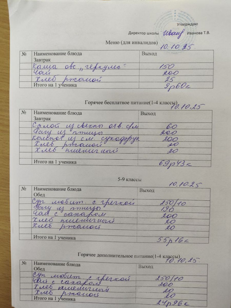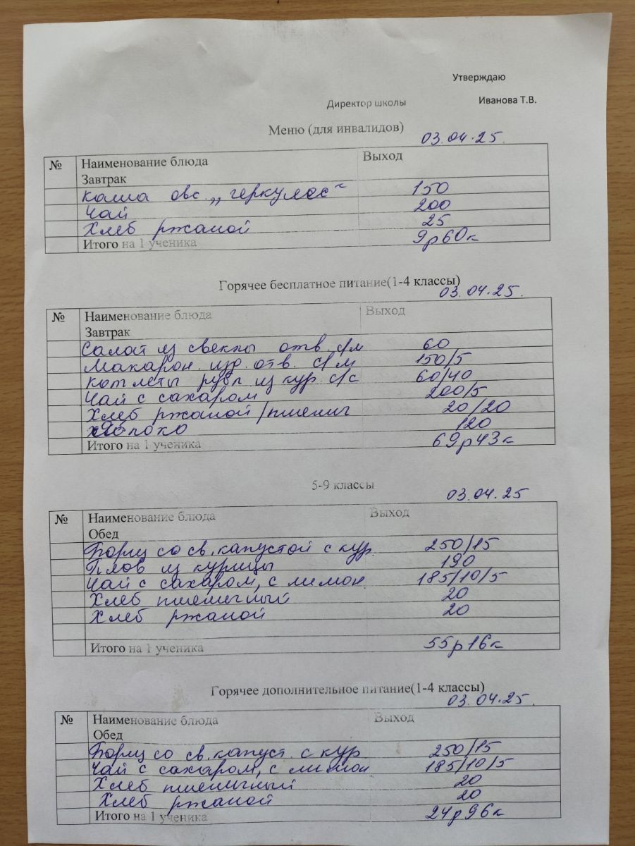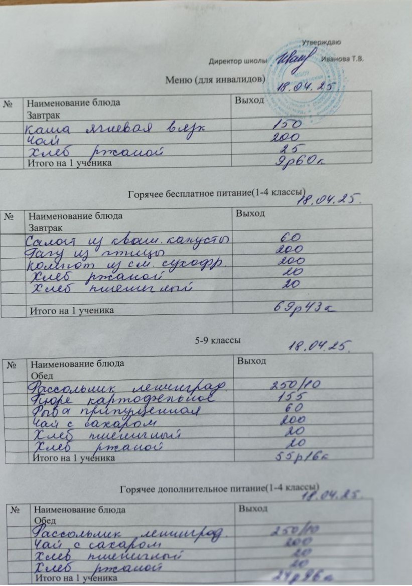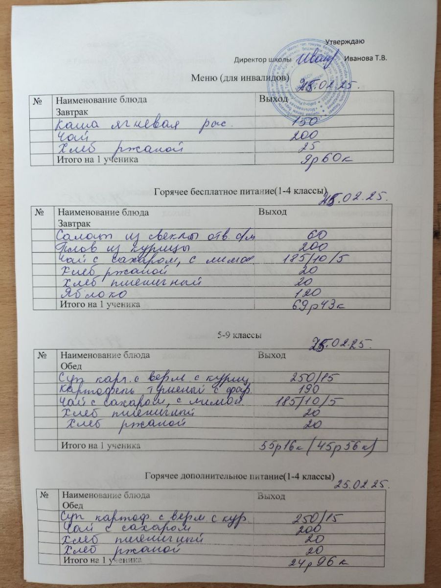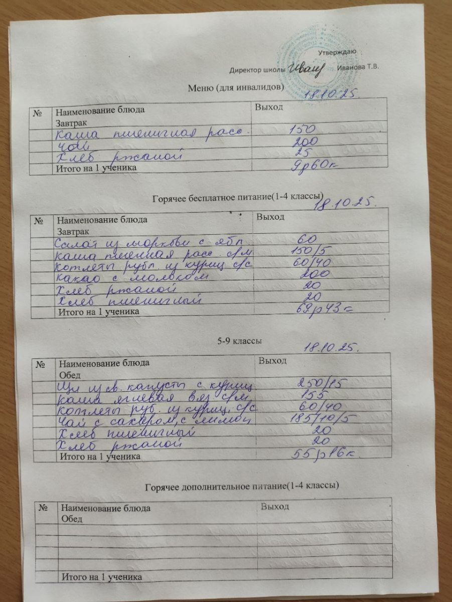 - Меню в столовых общеобразовательных школ РТ с 20 по 25 ноября , 04 по 09 декабря , 18 по 23 декабря 2023г.