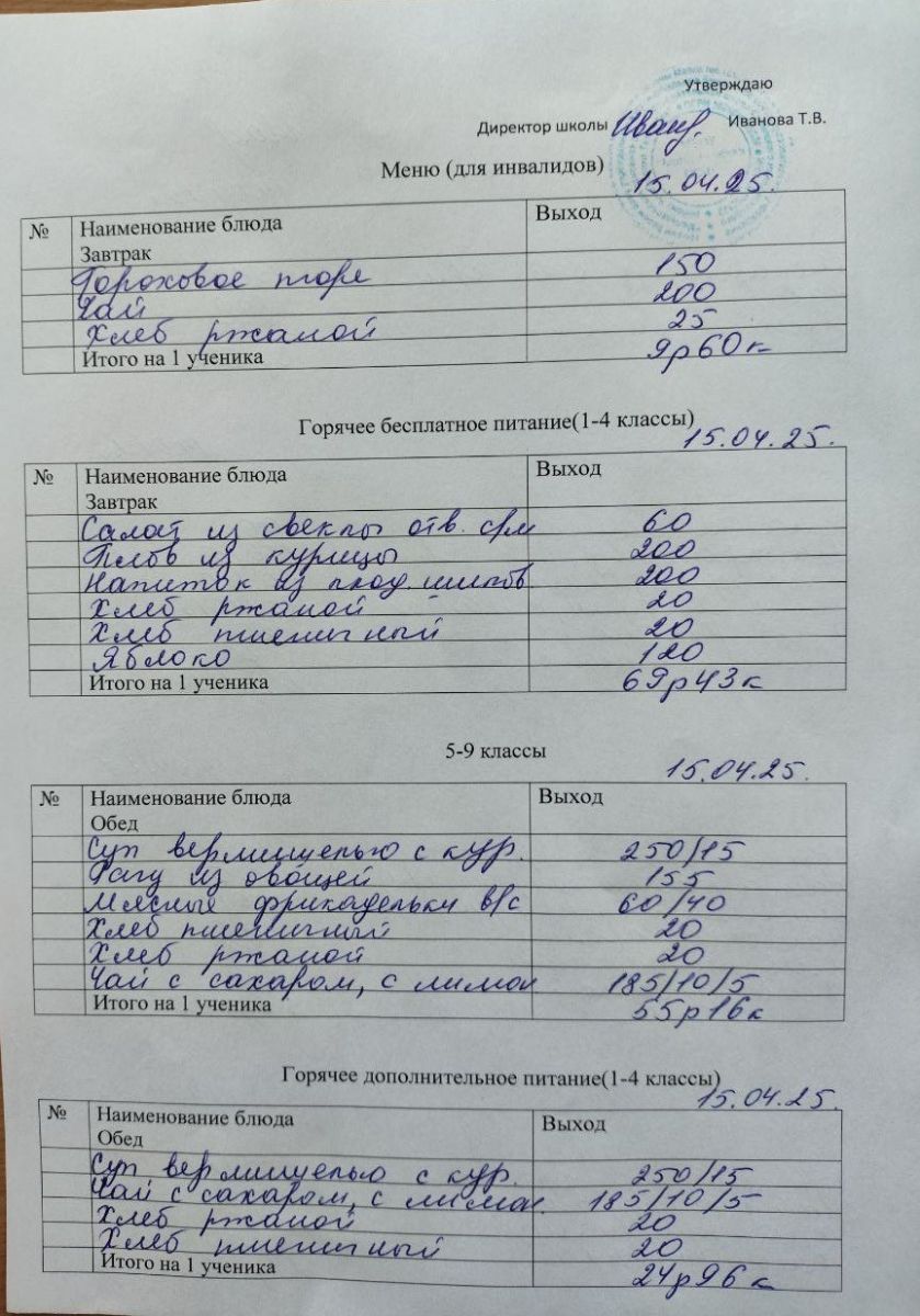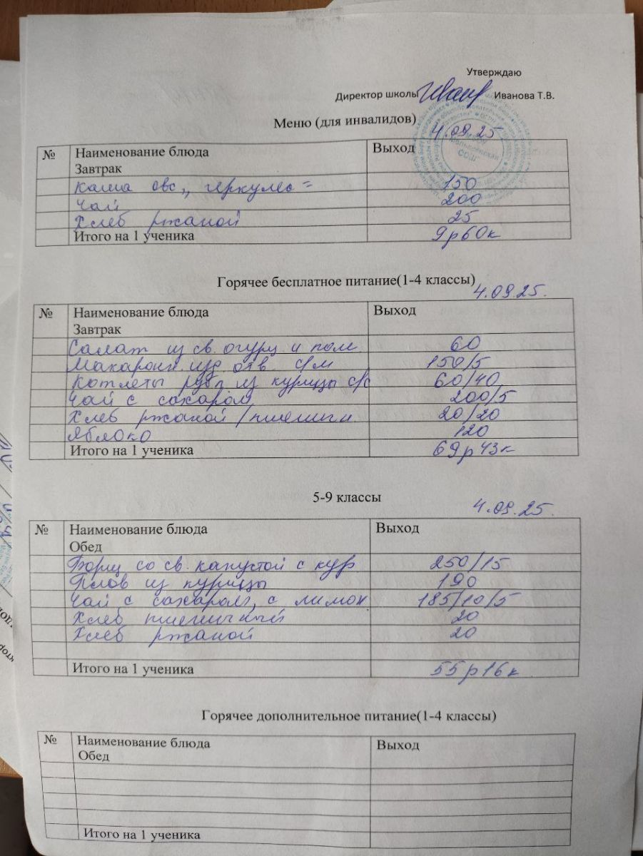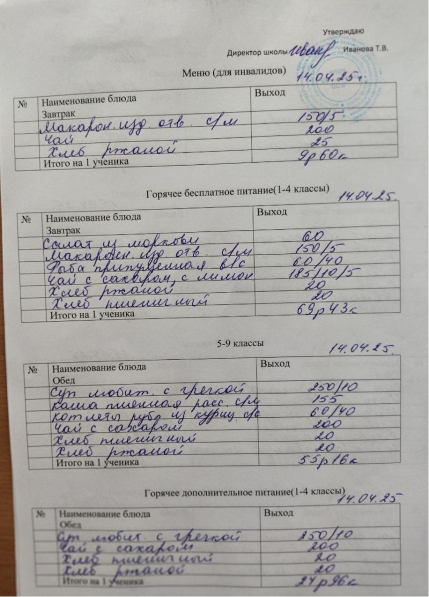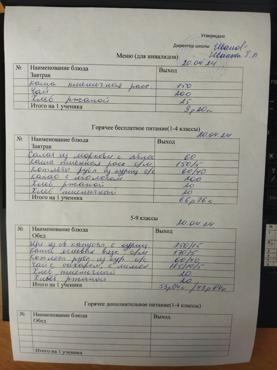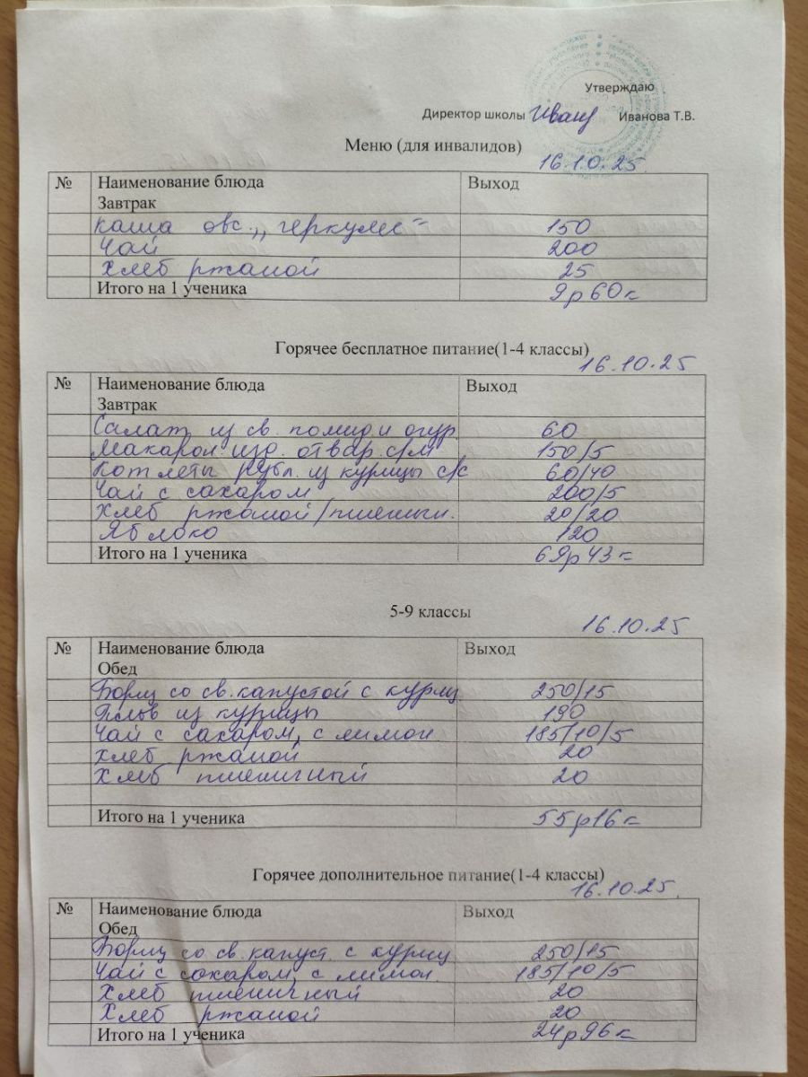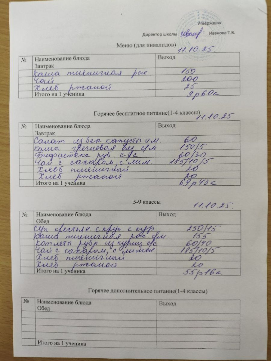 - Меню в столовых общеобразовательных школ РТ с 20 по 25 ноября , 04 по 09 декабря , 18 по 23 декабря 2023г.