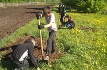 Бүген без мәктәптә бәрәңге утырттык.