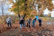 Сегодня очистили территорию школы, подготовили цветники к зиме, очистили от листвы.
