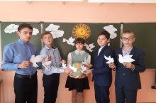 21 сентября – Международный день мира. Этот праздник призывает всех людей объединить свои усилия с целью противостоять насилию и агрессии. Сегодня в школе в честь этого дня было проведено классный час урок Мира. Учащиеся изготовили бумажных голубей – символ мира. Каждый человек хочет жить спокойно и счастливо под мирным небом. Дети - молодые жители нашей планеты и от них в будущем многое на земном шаре будет зависеть. Мир начинается с каждого из нас!
