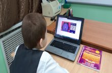 Укучылар дәресләрдән соң "Учи.ру" онлайн-платформада рус теле фәненнән олимпиада биремнәрен үтиләр.
