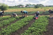 8 сыйныф укучылары мәктәп тәҗрибә кишәрлегендә эшлиләр.