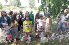 Лагерьда бүген "Экология көне".Балалар тәрбияче апалары белән тирә-яктагы, чишмә буендагы чүп-чарны җыештырдылыр, дару үләннәре җыйдылар.